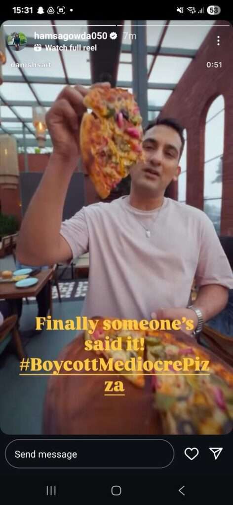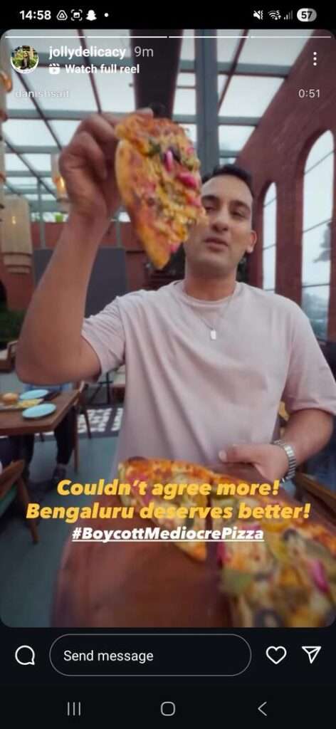 Within hours, #BoycottMediocrePizza was trending across X (formerly Twitter) and Instagram. Influencers, meme pages, and foodies chimed in, echoing Danish’s sentiments and calling for better quality and authentic flavors in Bengaluru’s pizza scene.