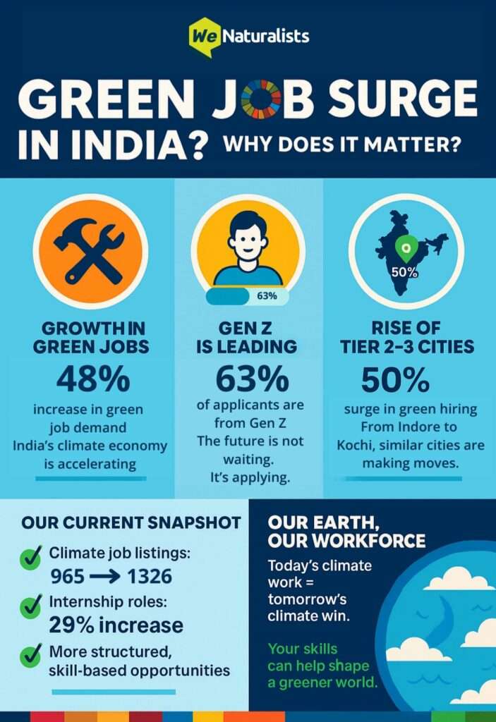According to national projections by the World Economic Forum and NLB Services, India’s green job demand is set to rise by 11% in 2025. WeNaturalists’ data not only supports this trend but reveals that talent readiness in non-metro regions is accelerating faster than expected.