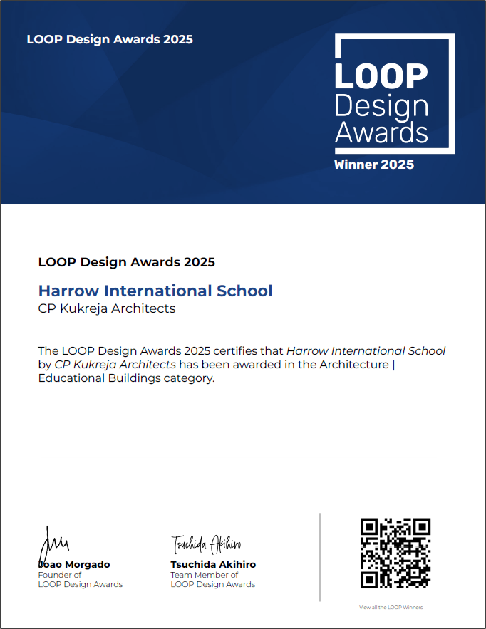 Bengaluru, September 25, 2025 — Harrow International School Bengaluru has been named a Winner in the Architecture | Educational Buildings (Citation) category at the LOOP Design Awards 2025, emerging victorious among more than 550 entries from 49 countries. Designed by CP Kukreja Architects, the campus sets a new global benchmark in combining heritage, ecology, and learning within educational architecture.