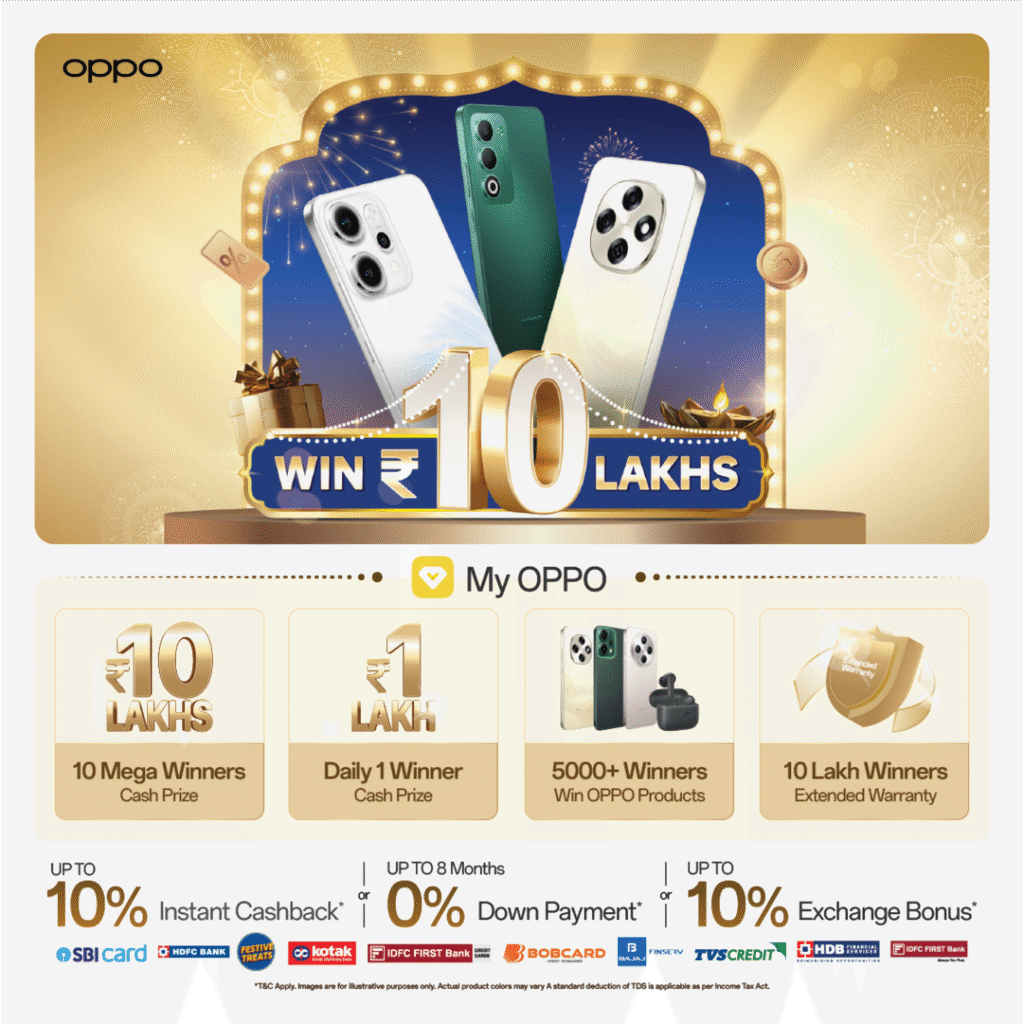 Additionally, customers stand a chance to win mega prizes including cash rewards of up to ₹10 lakh, OPPO devices, extended warranties, and reward points.