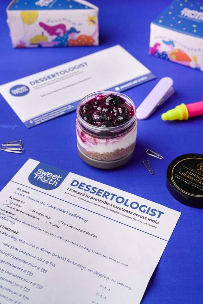 In this fun, tongue-in-cheek campaign, Sweet Truth plays the role of a ‘Dessertologist,’ diagnosing cravings, mood swings, and dessert blues as symptoms of cheesecake deprivation. Each order comes with a playful prescription envelope and a 10-day cheesecake “treatment plan” designed to keep dessert enthusiasts smiling.